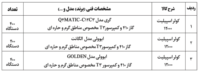 مناقصه خرید کولر گازی اسپلیت ۱۲۰۰۰ – مرحله دوم